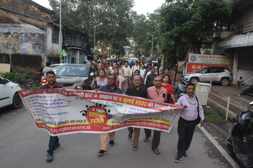 रायपुर। ट्रेड यूनियनों का संयुक्त मंच 9 जुलाई को देशव्यापी हड़ताल करने जा रहा है। श्रमिक संगठनों ने हड़ताल के समर्थन में मंगलवार को मशाल रैली निकाली है। मंच के संयोजक का. धर्मराज महापात्र ने कहा कि कल की हड़ताल में 20 करोड़ से अधिक मेहनतकश जनता शामिल होने जा रही है। Nationwide strike