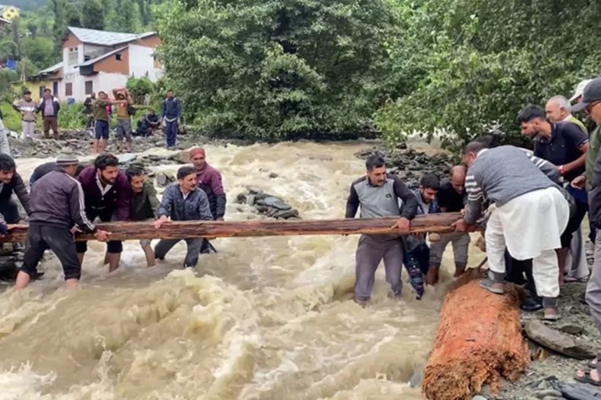 हिमाचल प्रदेश के चंबा जिले में भारी बारिश के कारण मणिमहेश यात्रा को रोक दिया गया है। इस दौरान 10 तीर्थयात्रियों की मौत हो चुकी है, 4 लोग लापता हैं और 7 घायल हैं। मंडी के जंजैहली में ग्रामीणों ने नाले पर लकड़ी का पुल बनाकर रास्ता जोड़ा है, जो बारिश के बीच एकमात्र सहारा बना हुआ है।