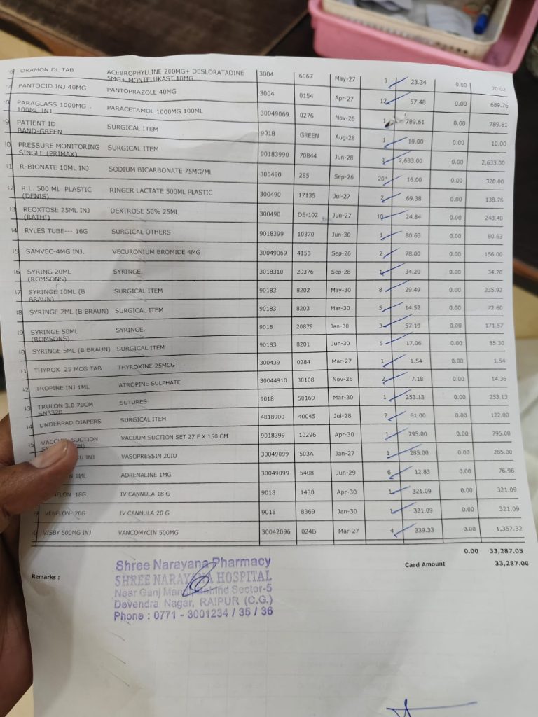 पड़ताल में पता चला कि बिल नंबर OPI320367 में 50 सामग्रियों की बिलिंग हुई है। इन दवाइयों और सामग्रियों का कुल दाम 33287 रुपए हुआ, जो ग्राहक से लिया गया। जबकि नए दर के अनुसार इन दवाइयों की कीमत नए दर के अनुसार करीब साढ़े 31 हजार रुपए होनी चाहिए थी।