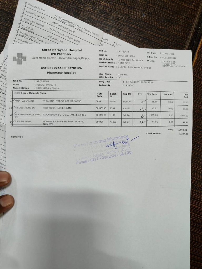 इसी तरह बिल नंबर OPI320419 में 2 दवाइयां और 2 सामग्रियों का कुल बिल 2160 रुपए बना, जबकि इसका बिल करीब दो हजार रुपए होना चाहिए था।