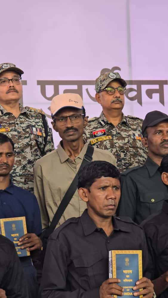 वहीं महाराष्ट्र के गढ़चिरौली में मुख्यमंत्री देवेंद्र फडणवीस के सामने बुधवार को छह करोड़ रुपये के इनामी माओवादी पोलित ब्यूरो सदस्य मल्लोजुला वेणुगोपाल राव उर्फ भूपति उर्फ सोनू उर्फ अभय ने 60 साथियों के साथ बंदूक छोड़ भारतीय संविधान की किताब थामी। इनसे करीब 50 हथियार भी मिले हैं।