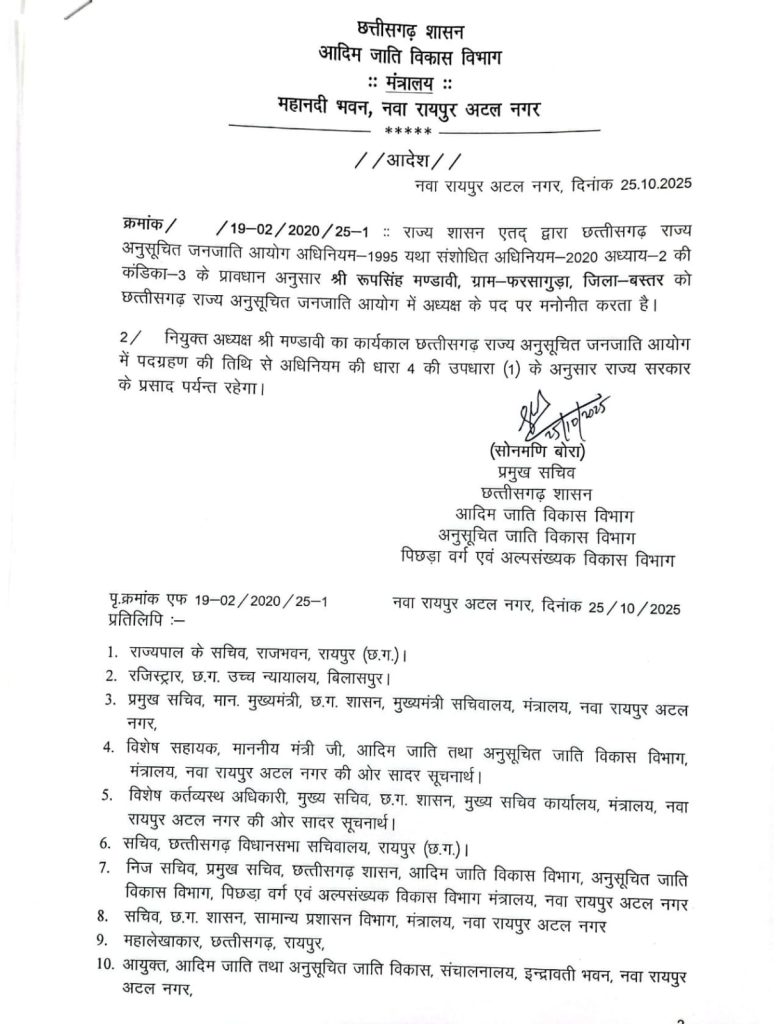 आदिम जाति विकास विभाग के प्रमुख सचिव सोनमणि बोरा ने इस संबंध में आदेश जारी किया है।