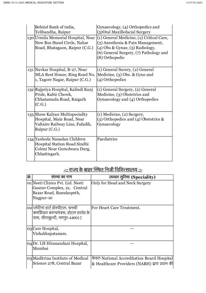 दरअसल इस सूची में केवल अस्पताल ही शामिल हैं। इस तरह के संभवतः किसी भी संस्थान को शासन की तरफ से मान्यता नहीं दी गई है। स्वास्थ्य विभाग के सूत्रों के मुताबिक इन दोनों ही विधायकों ने जिंदल नेचर क्योर में स्वास्थ्य लाभ लिया और छत्तीसगढ़ के स्वास्थ्य विभाग में रीइंबर्समेंट का क्लेम किया। इन सूत्रों का कहना है कि मामला विधायकों का था शायद इसलिए विभाग के उच्च अधिकारियों से ही अनदेखी हो गई और बिना मान्यता सूची देखे इनके क्लेम को मंजूरी दे दी गई। प्रक्रिया के तहत अब ये स्वीकृति विधानसभा में जाएगी और वहां से इन्हें इसका भुगतान होना है।