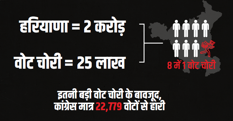 राहुल गांधी के एक आरोपों में से यह भी है कि हरियाणा में चुनाव नहीं हुआ बल्कि जनादेश चुराया गया। चुनाव अधिकारियों ने सुनिश्चित किया कि कांग्रेस की वापसी न हो सके। राहुल ने कहा कि उनके द्वारा इस्तेमाल किए गए सभी आंकड़े सीधे चुनाव आयोग से लिए गए हैं। इससे भारतीय लोकतंत्र की असलियत सबके सामने आ गई है।