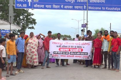 रायपुर में बिल्डर को बेच दिया तालाब, ग्रामीणों ने दिया धरना, थाने का किया घेराव