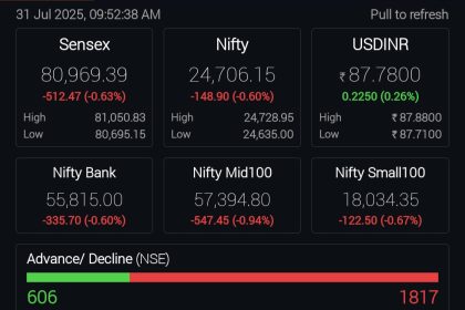 ट्रंप के 25% टैरिफ से शेयर बाजार का शुरुआती कारोबार लड़खड़ाया, सेंसेक्स 683 अंक टूटा